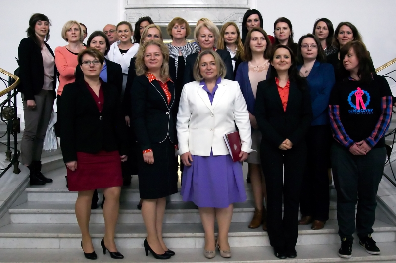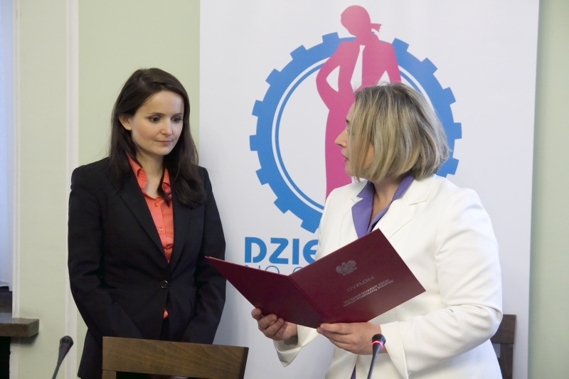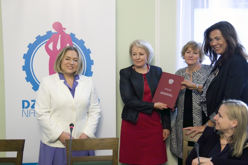 Na koniec spotkania Marszałkini Sejmu RP, Wanda Nowicka, wręczyła dyplomy uznania za działalność na rzecz dobra publicznego, organizatorom akcji „Dziewczyny na politechniki!” – Konferencji Rektorów Polskich Uczelni Technicznych oraz Fundacji Edukacyjnej Perspektywy.