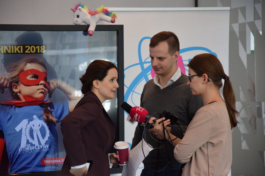 Prezentacja Raportu "Kobiety na politechnikach 2018", zapowiedź Ogólnopolskiego Dnia Otwartego dla Dziewczyn – kulminacyjnego punktu akcji „Dziewczyny na politechniki!” i „Dziewczyny do ścisłych!” oraz informacje na temat programu stypendialnego "Nowe technologie dla dziewczyn" i programu inspiracyjnego dla studentek informatyki − "IT for SHE" były najważniejszymi punktami konferencji prasowej, która odbyła się 8 marca na Politechnice Warszawskiej.