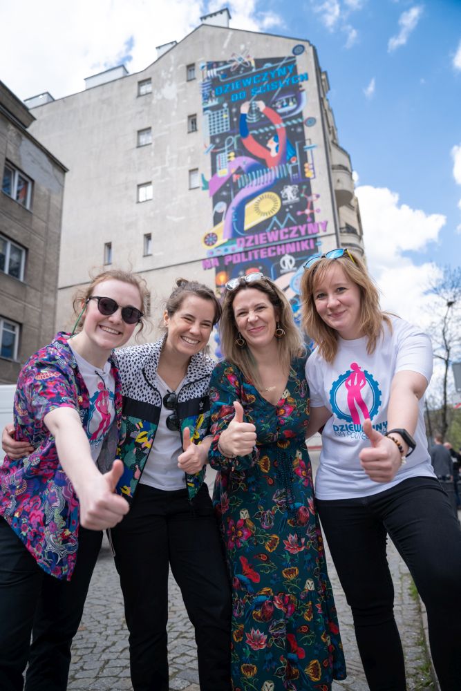 Z tej okazji 20 kwietnia odsłoniliśmy w samym centrum Warszawy ogromny mural poświęcony kobietom w STEM: naukowczyniom, inżynierkom, innowatorkom i wizjonerkom nowych technologii! Mural zdobi ścianę kamienicy przy ul. Emilii Plater 25, a jego autorką jest artystka Anna Rudak. Wierzymy, że ten wspaniały kobiecy mural odmieni centrum Warszawy, a kobiety w technologiach odmienią cały świat!