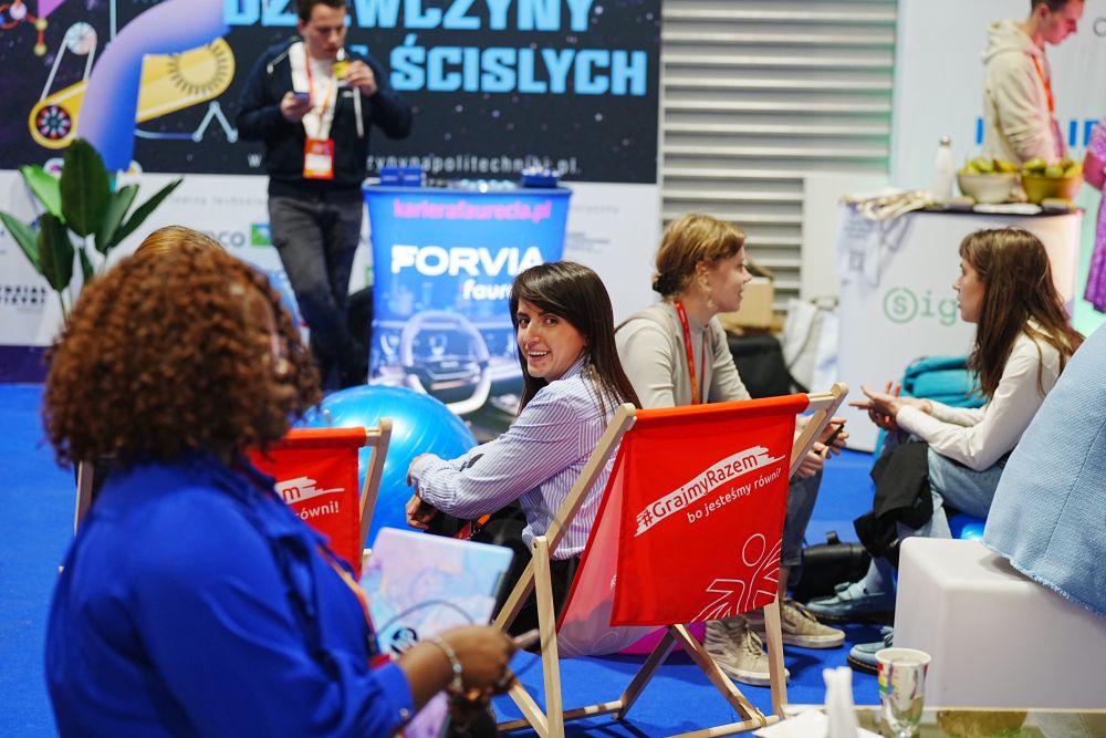 W ramach strefy można było poznać Ambasadorki kampanii (studiujące kierunki techniczne i ścisłe lub pracujące już w branżach technicznych). Dziewczyny chętnie rozmawiały z osobami uczestniczącymi Summitu- o tym, dlaczego wybrały taką ścieżkę edukacji i kariery, co je ekscytuje w tym co robią, jak naprawdę wygląda sytuacja kobiet w tym bardzo zmaskulinizowanym świecie i jak ich uczelnie/firmy wspierają je na tej drodze.