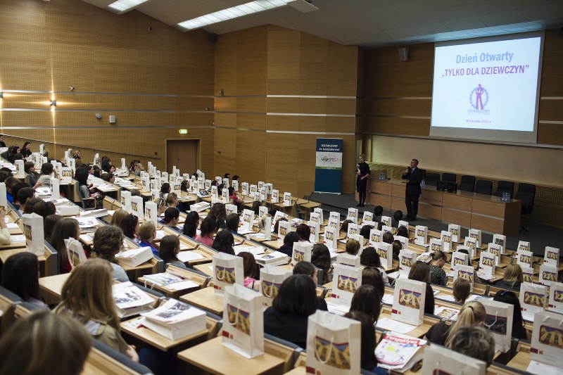 Wypełniona dziewczynami aula Wydziału Samochodów i Maszyn Roboczych PW robiła duże wrażenie, także na już studiujących tam studentach. Tak było na 16 uczelniach, które na Dzień Otwarty Tylko Dla Dziewczyn przygotowały dla uczestniczek specjalne programy. Uczestniczki mogły na przykład wsiąść do bolidu Formuły 1, kibicować wyścigom robotów, zeskanować swoją twarz w 3D, zrobić doświadczenia chemiczne, poznać podstawy projektowania architektonicznego, programować smartfony wykorzystaniem GPS-u. A przede wszystkim zobaczyć uczelnie, porozmawiać ze studentkami i kobietami-naukowcami, a także z paniami, które już osiągnęły sukces w technice, naukach ścisłych czy branży IT. To kolejny krok w przełamywaniu stereotypów na temat męskich i kobiecych zawodów i konkretna podpowiedź do podejmowania studiów na kierunkach technicznych i ścisłych.