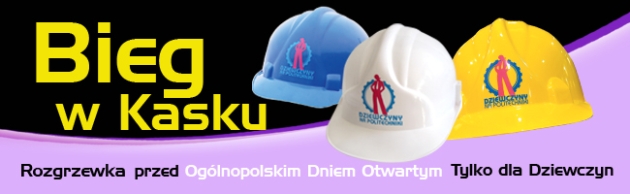 Ten nieszablonowy element akcji "Dziewczyny na politechniki!" łączy pęd do wiedzy z fizycznym aspektem rywalizacji. Trasy Biegów uczestniczki przebędą w obowiązkowym kasku budowlanym na głowie. Nie jest to zwykły kask - a kask kultowy - z logiem akcji "Dziewczyny na politechniki!". Każda uczestniczka (i uczestnik) dostanie Kask w prezencie!